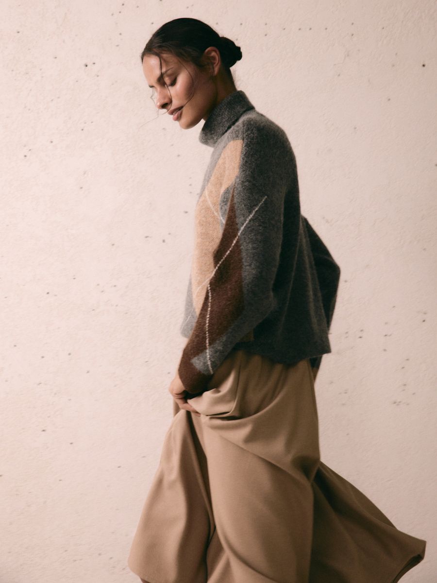 Бежеві, кавові та сірі відтінки створюють ідеальну базу, а кольори, як-от бордо, теракотовий чи хакі, додають виразності. Светри гармонійно виглядають з джинсами, під пальто або навіть із трикотажною спідницею — ідеальне поєднання для осені.